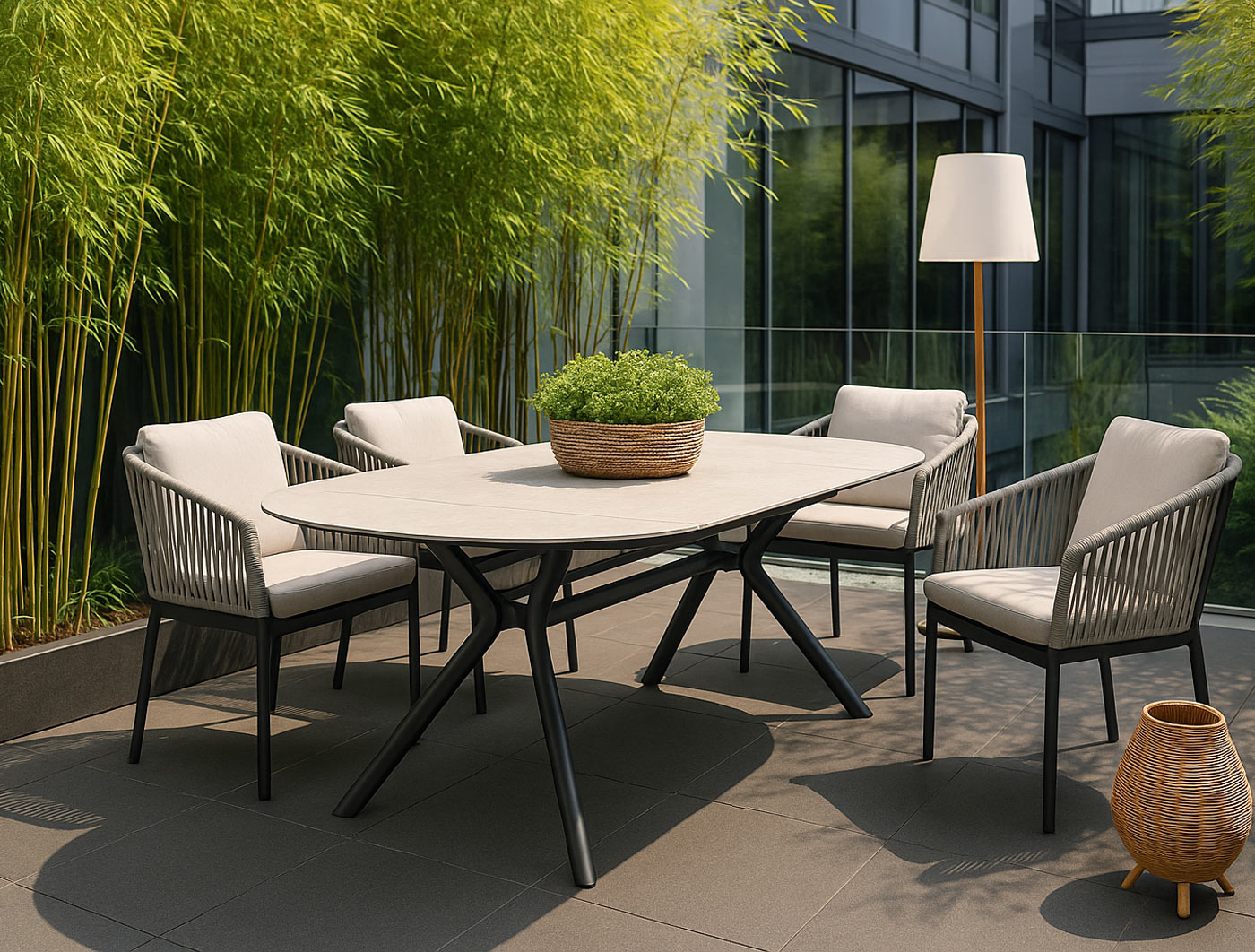 Der neue Atlas Reh Alu Speisetisch mit ovaler Tischplatte ist unvergleichlich in Ausführung und Design. Besonders harmonieren helle Tischplatten mit den Alubeinen.