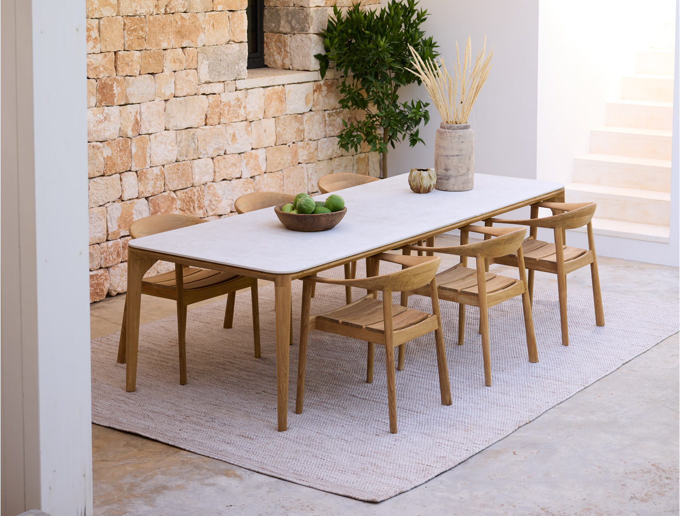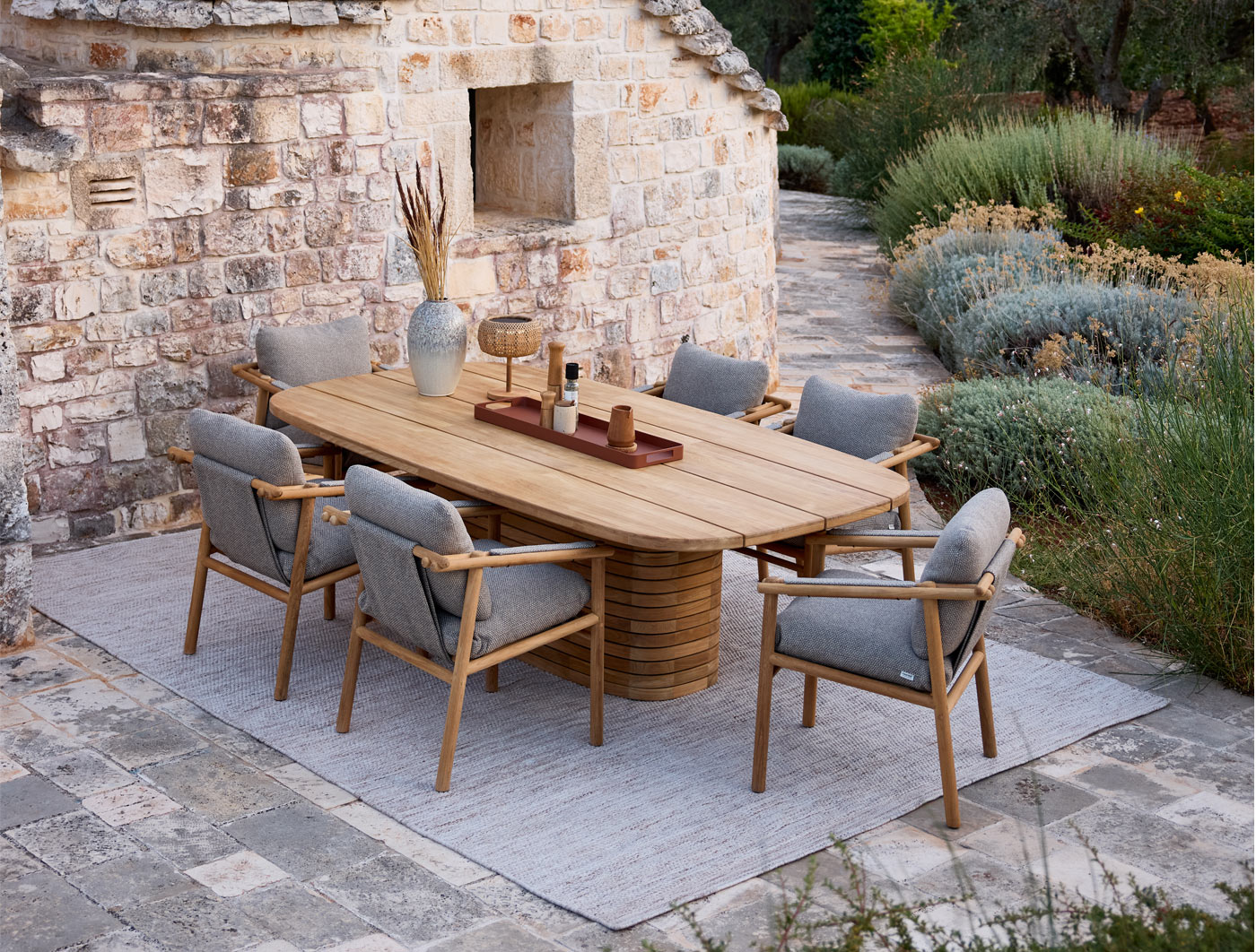 Der Cloud Teppich von Cane-line Design bildet eine weiche Grundlage für intime Lounge- oder Essbereiche. Das handgeflochtene Muster, inspiriert von den Formen ziehender Wolken, verleiht jedem Raum eine dezente Struktur und Wärme, ohne sich in den Vordergrund zu drängen. Ideal, um Bereiche auf Terrassen oder in gemütlichen Leseecken zu definieren, bringt dieser rechteckige Teppich Ruhe und Harmonie in die Einrichtung.