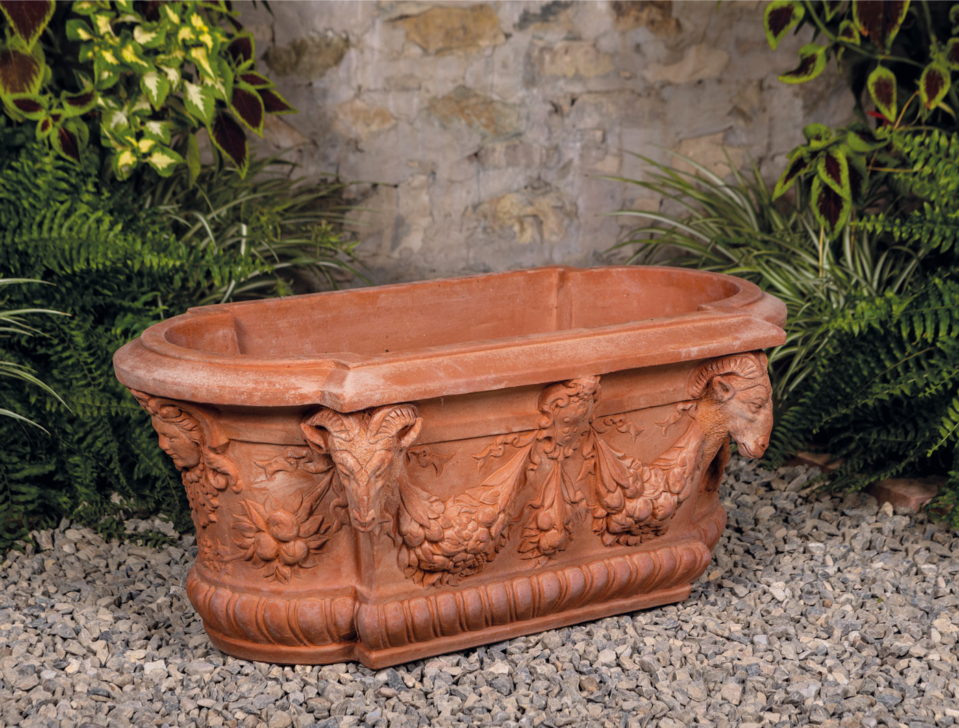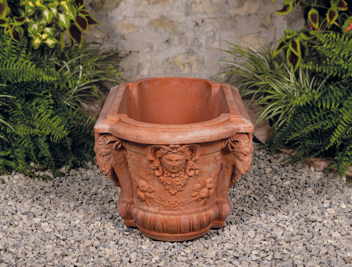 Pflanzgefäß mit Widderköpfen