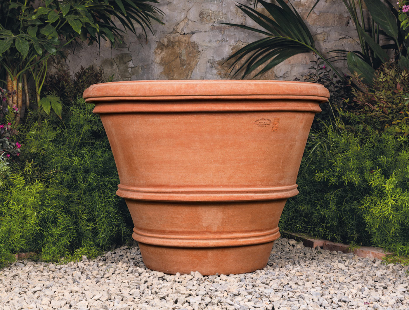Terrakotta Produkte aus Impruneta unterscheiden sich in vielen Merkmalen von anderen Terracotta Produktionen und Arten. Das liegt an der besonderen Beschaffenheit des Gebietes und der speziellen chemischen Zusammensetzung des Tons. Der einmal bearbeitete, gebrannte Rohstoff verleiht dem Produkt eine besonders hohe Resistenz gegen Frost und seine typische warme Färbung voller Farbnuancen. Die einzigartige Qualität der Produkte Imprunetas ermöglicht es, diese harmonisch in jedes Ambiente einzupassen. Jedes Produkt wird nach alter Tradition liebevoll handgefertigt.