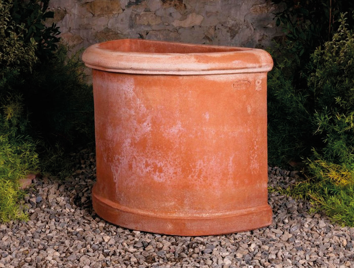 Terrakotta Produkte aus Impruneta unterscheiden sich in vielen Merkmalen von anderen Terracotta Produktionen und Arten. Das liegt an der besonderen Beschaffenheit des Gebietes und der speziellen chemischen Zusammensetzung des Tons. Der einmal bearbeitete, gebrannte Rohstoff verleiht dem Produkt eine besonders hohe Resistenz gegen Frost und seine typische warme Färbung voller Farbnuancen. Die einzigartige Qualität der Produkte Imprunetas ermöglicht es, diese harmonisch in jedes Ambiente einzupassen. Jedes Produkt wird nach alter Tradition liebevoll handgefertigt.