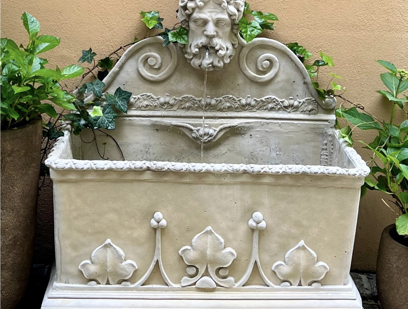 “Aged Cotswold Stone” wird aus feingemahlenem alten Stein mit sehr fein zermahlenem Sandstein gemischt und mit Zement und Wasser gebunden. Der Sandstein stammt aus den ‘Cotswolds”, einem Naturgebiet in England. Die Mischung wird mit der Hand in einer Gußform gestampft und nach ein paar Tagen wird der Stein aus der Form herausgeholt. Dann wird das Ganze mit der Hand vollendet. Nach dem Trocknen wird der Stein mit Hydrochloridesäure behandelt, um ihm eine etwas dunklere Schattierung zu verleihen und ihm ein rauheres, natürlicheres Aussehen zu geben. Dank der handwerklichen Herstellungsmethode gleicht keines der Produkte genau dem anderen, und die Menge an “Aged Cotswold Stone” Ornamenten, die durch dieses Verfahren hergestellt werden kann, bleibt zwangsläufig sehr begrenzt.
